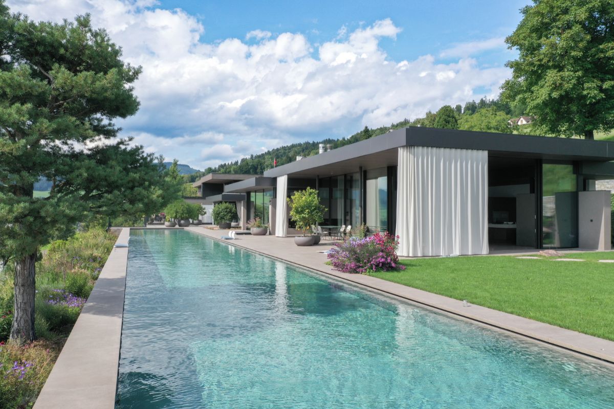 Fazit: Die Anlage Seeblick zeigt, was möglich ist, wenn Architektur, Technik und Ausführung sauber zusammenspielen. Ein 50-Meter-Pool, der Präsenz hat, ohne laut zu sein. Präzise gebaut, technisch durchdacht und gemacht für langfristige Nutzung.